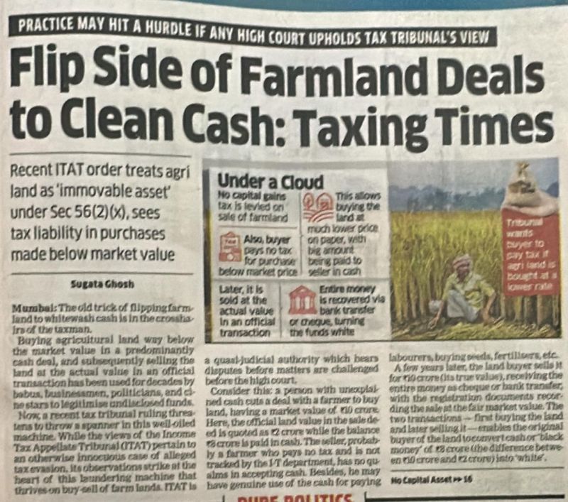 In a striking move, the Income Tax Appellate Tribunal (ITAT) has ruled that agricultural land qualifies as an "immovable asset" under Section 56(2)(x) of the Income Tax Act—potentially reshaping decades-old practices of farmland-based cash whitening.