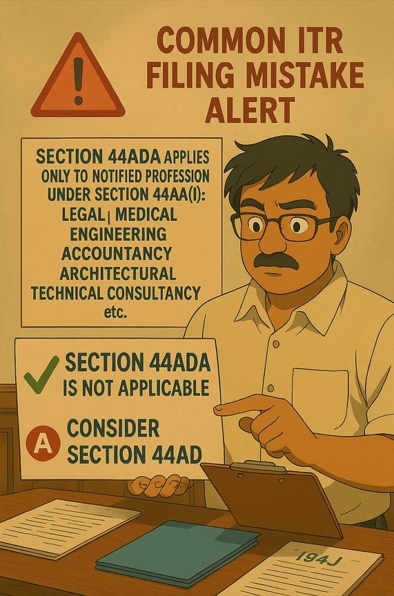 Just because TDS is deducted under Section 194J, many mistakenly choose Section 44ADA, assuming it applies to all professional income.