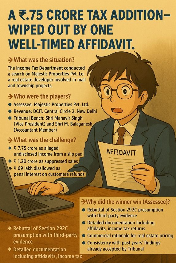 A ₹7.75 crore tax addition—wiped out by one well-timed affidavit. This case is a masterclass in how facts and timing can shift the outcome in tax litigation.